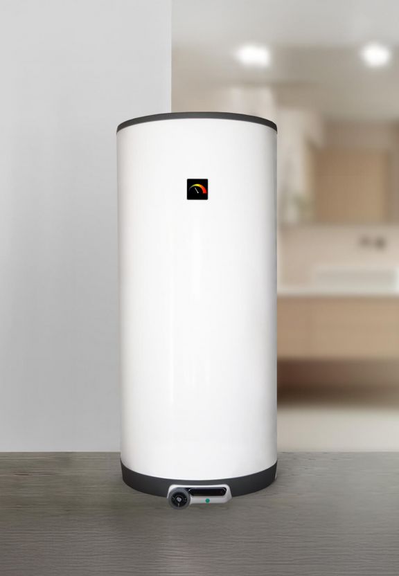 Statt aufwendiger Technik setzt der Boiler auf ein simples, robustes System: Ein Trockenheizstab für die Bedarfsdeckung und ein zusätzlicher Trockenheizstab - gesteuert per Zeitschaltuhr oder Energiemanagementsystem - speichert überschüssigen Strom aus Sommersonne & Winterwind im Warmwasser.